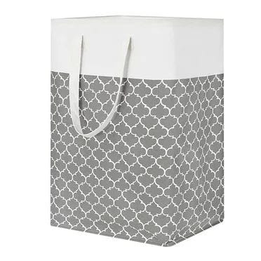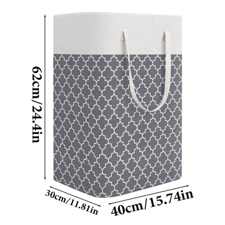 Add style to your storage with this beautifully patterned laundry hamper. Featuring a grey and white geometric design, it blends organization with décor. The open-top design allows easy drop-in use, while strong handles make transportation effortless.